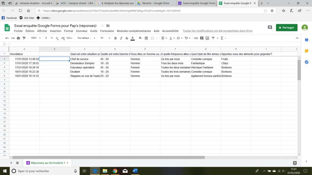 4.2 Consulter les réponses dans Sheets